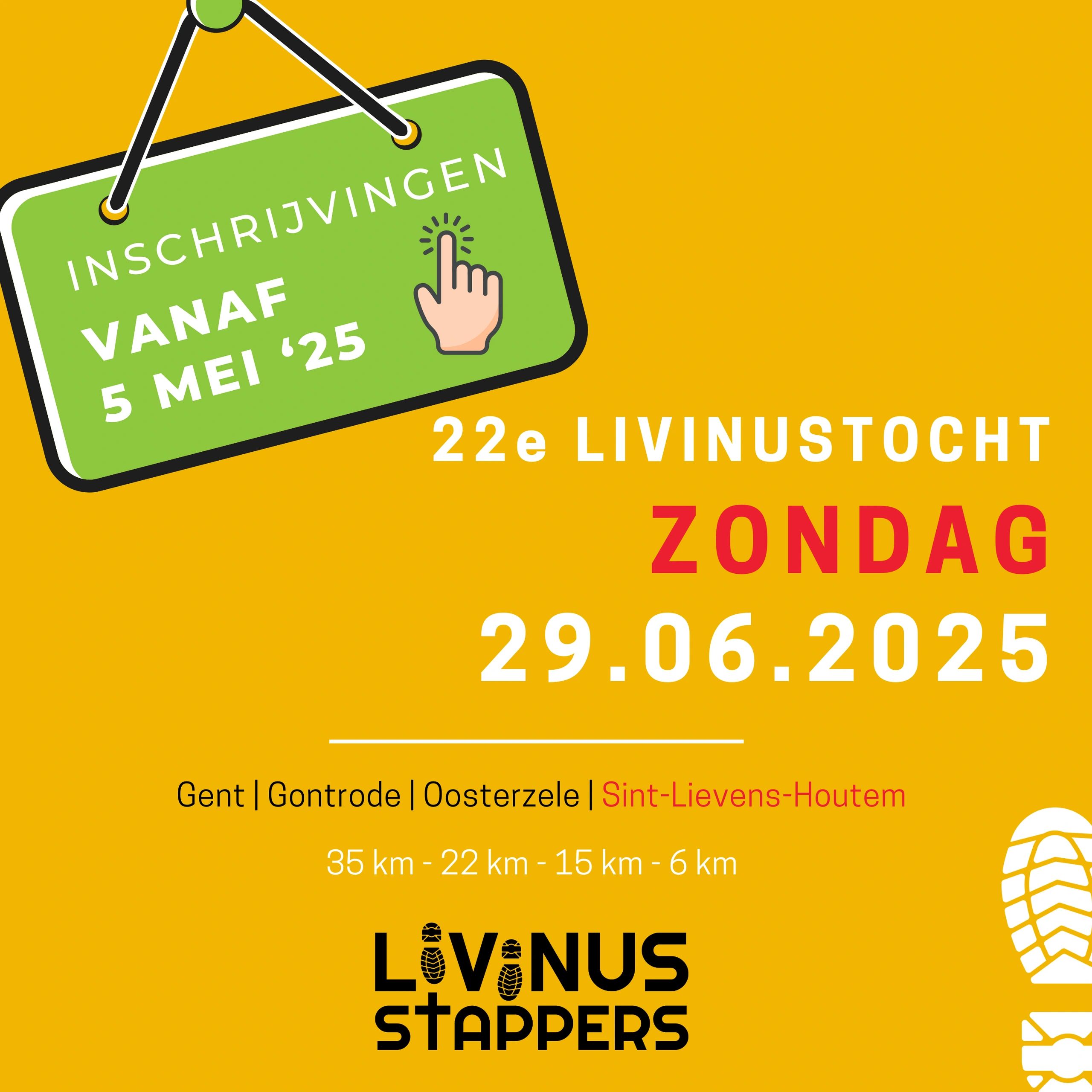 Inschrijven voor de LIVINUSTOCHT is verplicht en kan vanaf maandag 5 mei t.e.m. zondag 22 juni 2025.